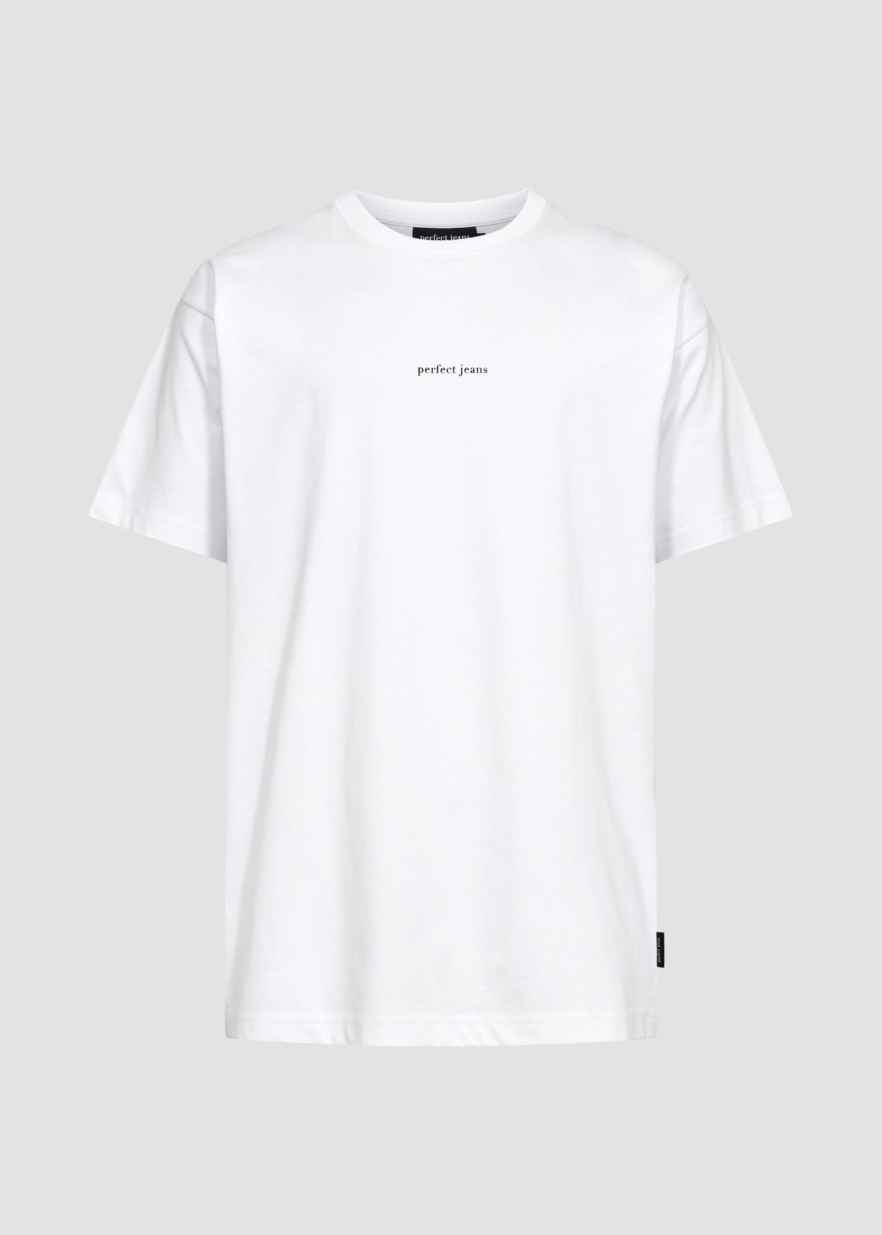Perfect T-shirt – Marguerites is a white T-shirt with a minimalist and versatile design, featuring a round neckline. The black Perfect Jeans logo printed on the front adds contrast and character without overpowering the clean look. It is made of 100% cotton, ensuring a light and comfortable feel throughout the day. With its relaxed fit, it is ideal for your everyday wear.