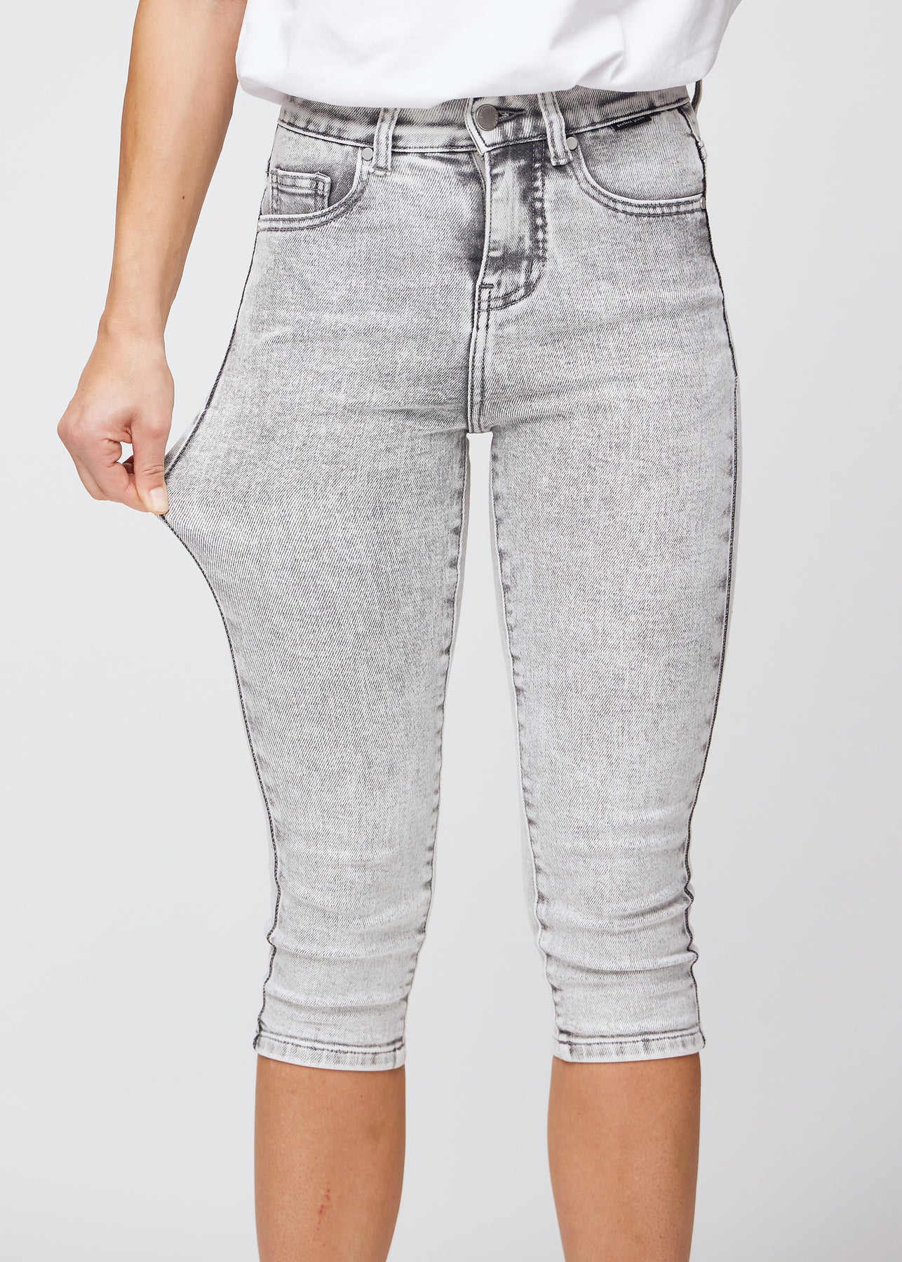 With Perfect Capris - Skinny - Ashes, you get a pair of light gray capris for women, in a beautiful denim look. Our denim is developed with a special weave, making them stretchy, comfortable, and soft, so you can experience optimal comfort all day. Our skinny capris are high-waisted and are our most form-fitting capris model, designed with two deep pockets both in the front and back. The modern gray denim capris retain their color and shape after washing and wearing, and are perfect for all occasions and activities.