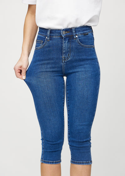 Our Perfect Capris - Skinny - Oceans is the perfect fit for you if you're looking for a pair of skinny capris in a beautiful denim look that's also comfortable. We have developed denim in a completely new way with lots of stretch and comfort. Here you get a pair of dark blue denim capris for women with all the details of classic denim, ensuring you freedom of movement. Our skinny denim capris are high-waisted and are our most form-fitting capris. They are designed with two deep pockets both in the front and back. The beautiful dark blue denim capris fit any outfit and are a must-have in any wardrobe.